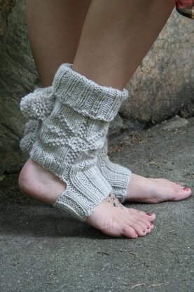 These legwarmers were inspired by my early dancing days. Since I didn’t yet knit, I would alter commercial legwarmers, or even knee socks, by cutting heels and toes out as I required. Of course, the result was rather ragged and mostly fell apart. Lady Grey will stay prettily on your feet while you dance the night away.