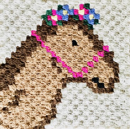 This adorable C2C square pattern can be used on it’s own to make a throw pillow, tote bag, baby lovey, small pet blanket, wall hanging or you can combine other compatible squares to make a blanket as pictured above.