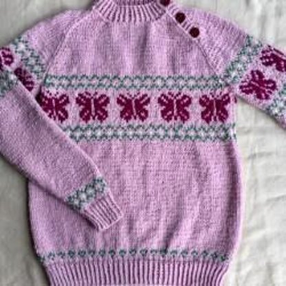 Two for the price of one!!! These simple raglan jumpers are knitted in parts with a merry band of either ladybirds or butterflies at the chest. They have a button fastening on the raglan seam..The instructions include charts for the colour work and sizes range from 1 to 9 years.I used Willow and Lark Ramble, a lovely pure wool that is soft and has good stitch definition but any standard DK of the same gauge would work.