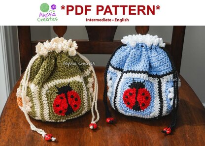 This is a pattern for my Ladybug and Daisy Drawstring Pouch! It is detailed and includes many photos for those that are more visual learners! I have classified this pattern to be at an intermediate level. Though I think an advanced beginner could give it a try :)