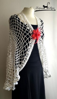 General information about the pattern Ladybug In Spider’s Web wrap consists of 3 separately made pieces which are all crocheted in the rounds – 1 circle motif and 2 semicircles. The motifs are joined together with a hook or yarn needle. After joining, the semicircles are folded towards the front and in that way they create sleeves. The wrap and sleeve edges are finished with shell borders. In the pattern you will also find a supporting photo tutorial, showing how to start round crochet with a magic ring.