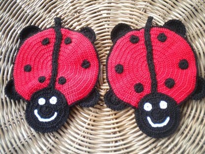 Crochet Potholder Ladybug pattern, Crochet Pattern 224. REQUIRED: • Crochet Thread #20 • US 1.25 mm Crochet Hook • Needle wool. • scissor STITCHES: • chain (ch), • single crochet (sc), • slip stitch (sl st), • double crochet (dc).