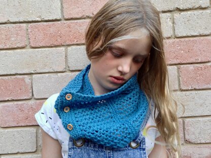 Instructions are included for working either the cowl or scarf. The cowl is finished with five buttons.