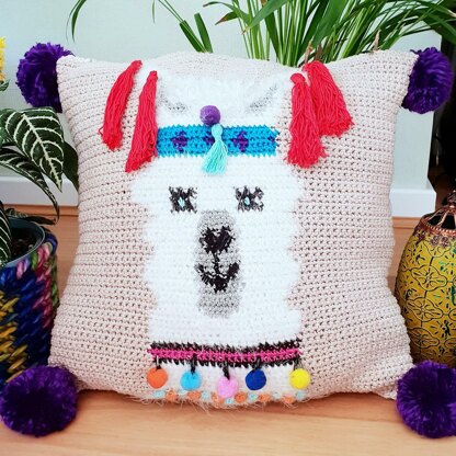 I made my Lovely Llama into a pillow with scrap cotton yarn and added pompoms to the corners just for that extra flair and fun.