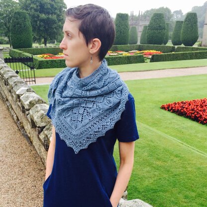 Inspired by the formal gardens of Lanhydrock, a magnificent Cornish stately home, this shawl features lattice patterns, leaves, and a delicate trim, which is knitted on.