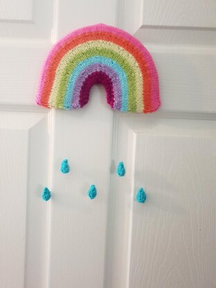 This is a very easy to follow knitting pattern for my cute hanging rainbow. You require a few extras to make this , such as felt and card and 3 beads to use inside the raindrops. Easy pattern to follow. I use double knit acrylic wool. Size 10 needles (3.25mm) and this toy measures 5.5 Inches tall (rainbow part only)