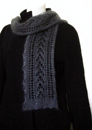 “Larisa” is an elegant scarf designed for one ball of Rowan Kidsilk Haze. It makes a perfect gift: a scarf which would both work with an everyday outfit and yet be pretty enough to wear for special occasions.