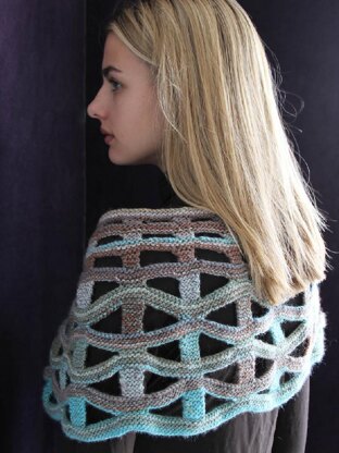 This attractive buttoned cowl features my Geometric Openwork technique using two different shapes - a triangle and a rectangle. More complex in shaping than it looks it is still simple to understand and knit. Worked only in Garter stitch it is a fun knit!!