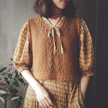 One pattern, two styles. Laura Vest is knitted top down and seamlessly. The sample of caramel color shown in Size 1 with folded edge. The sample of green color shown in Size 4 with ribbed edge.