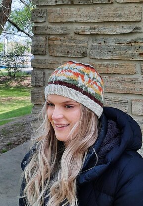 This hat knitting pattern is an easier knit due to using only 2 colours at one time.