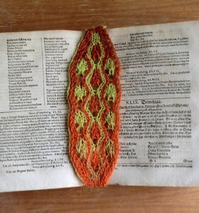 In The Silmarillion, Laurelin is described like this: “… The other bore leaves of a young green like a new-opened beech; their edges were of glittering gold. Flowers swung upon her branches in clusters of yellow flame, formed each to a glowing horn that spilled a golden rain upon the ground; and from the blossom of that tree there came forth warmth and a great light.“ This lace pattern made me think of the description of the younger of the Two Trees, so I named this little bookmark in her honor. It would be a perfect way to use up some of those inevitable remnants fingering weight yarn, as well as to try out the delightful art of double-knit lace. I have included an illustrated guide to a few of the most common stitches used in lace knitting, and how I do these stitches in double-knitting.