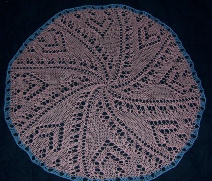 The swirl design starts in the center with 8 sts which are increased every other round, creating the swirl. In addition, you'll be doing lacy crosses and hearts to add interest!