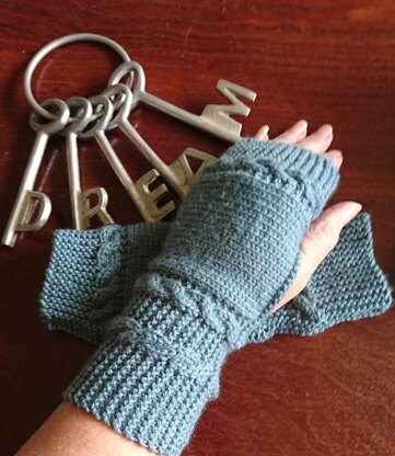 Laurenza mitts feature cables with garter stitch details.