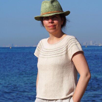 Laurus top is a circular yoke that is worked seamlessly from the top down. The neck is worked first, after that, several series of short rows are used for a comfortable and beautifully shaped finish.
