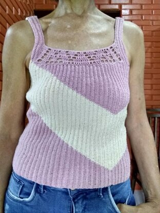 Lavanda is crafted using the intarsia crochet technique and woven vertically (side-by-side). Front and back are woven separately, the front neckline is finished in filet crochet, and in the lower central part of the back there is another detail that creates a small increase simulating the brioche stitch. Joining the front and back is made with a tapestry needle.