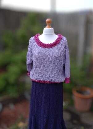 This is a light weight sweater which can be worn on the bright, warm but breezy days and long summer nights of the far north of Scotland,or indeed anywhere that you need a light cover up.