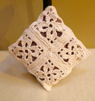 This little lavender bag comprises eight crocheted lace squares which are stitched together. Inside is an organza bag containing lavender. A perfect gift, or make it to line your own drawers. A quick project you can make whilst on the go; the squares can be crocheted individually then sewn together when you have a spare moment. Whilst not a beginners project due to the fine cotton you could always make it in a slightly thicker cotton to start with before tackling the very fine lace working cotton.