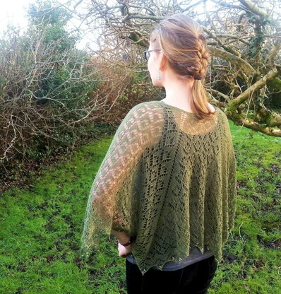 A hexagon shape is transformed into a stunning delicate garment by two seams. Beads are added to the edging to add a bit of weight to the garment, enabling it to hang beautifully.