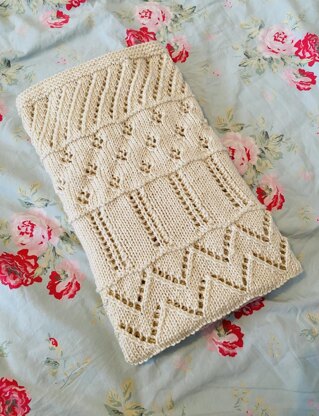 This is a lovely textured, cosy blanket. It uses various different lace patterns giving a striking effect.