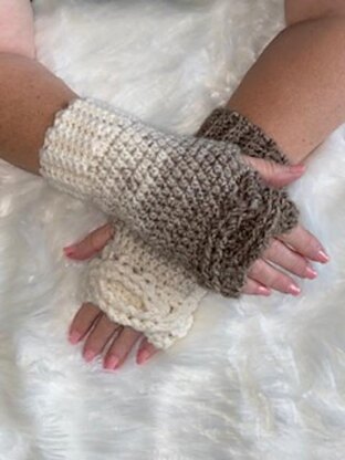 Lazy Cables Fingerless Gloves is another exciting pattern in the Lazy Cables Collection that includes Pocket Shawl, Beanie, Messy Bun Hat, Ear Warmers and Ponytail Ear Warmers. Great selection to mix and match pieces to match your style.