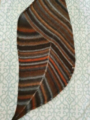 • The whole shawl is worked in stockinette stitch with garter st on the outside edges. • There are 3 garter st edges on both outside edges of this shawl. • Beads are added to the “Stems” of the shawl at each end and also to the “Center Spine” of the “Leaf”. • There are 5 sections to complete this shawl. • variegated color yarn best shows this pattern.