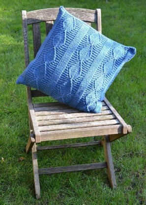 This cushion cover is a fairly quick and easy knit. It is knitted in Aran wool, with Size 6 mm. It fits a 50cm cushion pad, so is quite big.