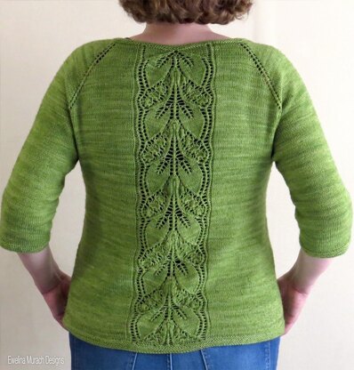 Leaf Lace Cardigan is a seamless, top-down raglan cardigan made in fingering yarn, with an interesting lace panel at the back. The pattern has instructions for long sleeves, but they can be easily adjusted to any length. The body has hip shaping for flattering fit.