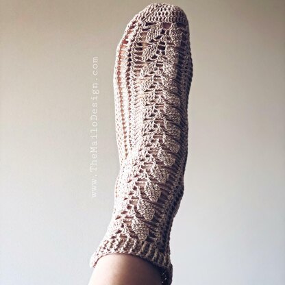 Skill level for crochet - Intermediate ( used stitches: ch, dc, dec3tog, dec2tog, inc2dc, fpdc, bpdc, shell st) The PDF Format pattern contains helpful pictures and step by step word description, total 13 pages If you have any questions about pattern, feel free to contact me, I'll do my best to help you! You will need: - Crochet Hook - 2 mm; US – 1/B; Uk – 13 - Sample made from Madame Tricote Maxi 100 gr/ 3.5 oz; 565 m/ 617 yds - For short socks you will need aprox 50 gr/1.7oz - Elastic thread, sewing needle (but notnecessary, only if you want to make cuff of the sock more elastic) Size: Adjustable to any adult size