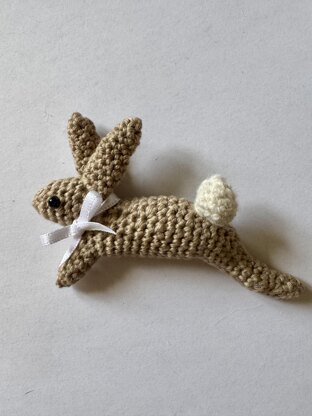 At just 10cm in length this little leaping hare is quick and simple to make. Only a small amount of yarn is needed making it the perfect pattern for using up any leftover yarns. Whether made as Spring gifts, decorations, place settings or to be hung on a garland or Easter branch , you will find that before long you have hooked up a whole family of hares. The body is worked in one continuous round, and the ears and tail are worked separately and attached after. I used a 4ply cotton yarn for clear shape and definition.