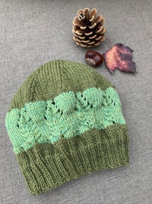 It is knitted seamlessly in the round using the magic loop method, starting at the brim. There is a chart and written instructions below for the leaf detail.