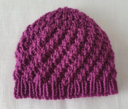 This baby Beanie is worked in diagonal rib and is suitable for a baby girl or boy. Worked in Mon Amour microfibre yarn, it is super soft and snuggly for baby to wear.