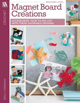 Leisure Arts eBook Crochet Magnet Board Creations- Have fun while crocheting this adorable collection of magnets that are perfect for year-round decor with a variety of seasonal themes. When you finish you'll have new and fun decorations that will grab the attention of all those who wander by, remind you of important messages or simply decorate the refrigerator door. Designs include: leaves, jelly fish, elephant, birds, and more. General crochet instructions, step-by-step pattern instructions and diagrams included. All projects require US size 4 medium weight yarn in assorted colors, a size G-6, 4 millimeter, crochet hook, yarn needle and magnetic strips. Some designs require additional supplies like embroidery floss and polyester stuffing. Beginner skill level. 34 page, PDF Digital Download.