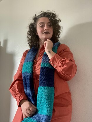 This scarf works up quickly and is a great project to work on while unwinding with a glass of your favorite and a TV show!