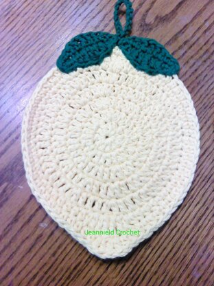 This pattern is for a lemon shaped dish cloth (or can be a lime if done in green yarn). Can be made with yarn of your choice and the color(s) of your choice; most people use cotton yarn for dish cloths.