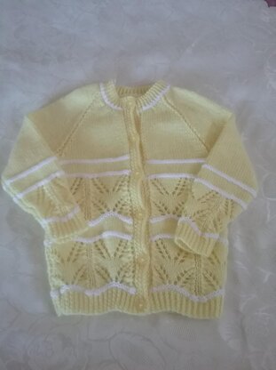 Lemon lace cardigan, age 3-4 years, 24" chest Knitted in stylecraft special dk but other dk yarns can be used