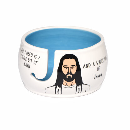 This irreverent yarn bowl from Lenny Mud will tickle those with a sense of humor. The bowl reads “All I need is a little bit of yarn and a whole lot of Jesus”. The ceramic bowl measures 6.25 inches (width) x 3.5 inches (height), and is handmade in the Lenny Mud New Jersey Studio.