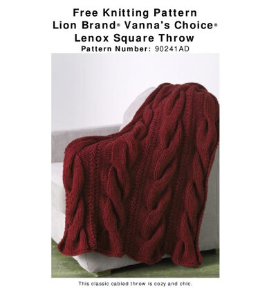 Lenox Square Throw in Lion Brand Vanna's Choice - 90241AD is a free Knitting pattern by Lion Brand, available as a Downloadable PDF and includes instructions in English. Super fun to make, this pattern could be your next masterpiece!
