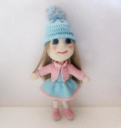 The Doll measures 12 inches standing and would look cute in whichever colours you choose to make her in