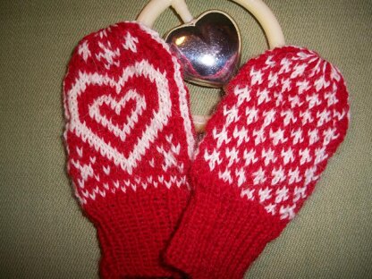 These little sweetheart (thumbless) mittens will keep tiny hands warm and toasty. Knit them with fingering or baby yarn and a strand of angora or alpaca. They will be soft and light for baby.