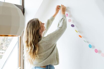 The Lethed sweater is worked from the top down and knit in one piece. Starting at the neckline, a high collar is worked in twisted rib, with a panel of garter stitch on each side that is continued all along the shoulder and along the side of the sleeves. The upper body is formed with raglan