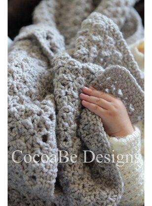 The Liam blanket uses a loose shell stitch that creates lovely, airy texture. I designed this blanket to be gender neutral, light weight, and fun to touch! The blanket isn’t too heavy or too light; it is just right! :)