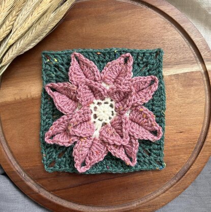 Beautiful crochet granny square featuring a 3d flower motif in the middle, you can use it as a component in many other projects like blankets, cushion covers, handbags as well as garments and other accessories.