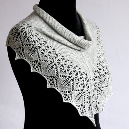 Meaning Hoar Frost in Scottish Gaelic, Liath-Reòthadh is a simple but fun cowlette. Knit from the top down like a traditional triangular shawl, Liath-Reòthadh is joined in the round just before the lace starts turning it from shawl to cowlette. The border on this cowlette is made up of little arrows which grow into large leaves at the edge, with delicate points formed between the leaves for a dramatic flare. Somewhere between a small shawl and a cowl, this is a fun knit and makes a fantastic easy to wear accessory!