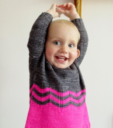 This lightweight sweater is worked seamlessly from the bottom up. The body is worked in the round to the underarms, after which the front and back are separated and worked back and forth. The shoulders are joined by casting on new stitches and working short rows in a chevron pattern. Stitches are then picked up for the full length sleeves, which are worked in the round. The neckline and cuffs are finished with ribbing.