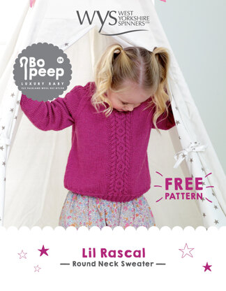 Lil Rascal Round Neck Sweater in West Yorkshire Spinners Bo Peep Luxury Baby - Downloadable PDF is a free Intermediate Knitting pattern by West Yorkshire Spinners, available as a Downloadable PDF and includes instructions in English. Super fun to make, this pattern could be your next masterpiece!