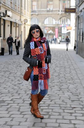 Original crochet super scarf with fringe, made of motifs which enables you to adjust its length and width as desired. Easy to make, with only one motif repeat, and compact to carry with you as a travel project. Great stash buster, excellent statement accessory, wearable any weather and season, a great Christmas gift for a woman who loves exquisite designs.