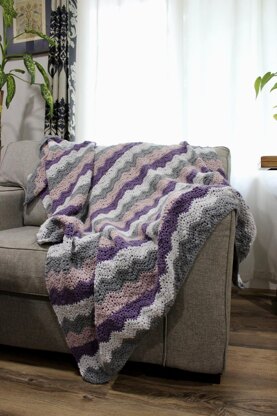 The Lilac Blossom Blanket crochet pattern is a more modern take on a retro rippled blanket. The pattern will expand your crochet skills but getting you to use stitches from single crochet all the way up to triple crochet. Once you get used to the row repeats the blanket will work up very quickly. The colors picked for this blanket were inspired by lilac blossoms and with the multiple color options of Pound of Love you can pick a color pallet to match your own favorite flower!