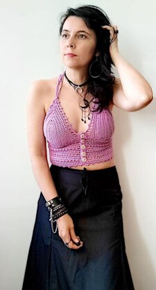 If the cleavage feels too deep, crochet a drawstring and lace it through the chain spaces at the bottom of the cups, just above the buttons.