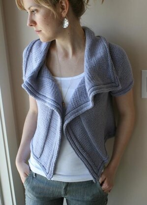 Lilas, French for “lilac”, is the product of inspiration from some beautifully colored cotton yarn. It is knit from the top down in one piece and requires no seaming at the end. Its big, floppy collar and relaxed style make for a chic and versatile piece that looks fantastic layered with long sleeves or over tanks and dresses. Quick and simple, this is a great sweater for beginning knitters.
