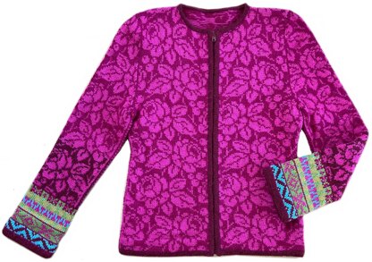 My LILLIAN JACKET is inspired by old brocade patterns. I have chosen roses in the main role, in combination with narrow borders at the bottom of the sleeves.
